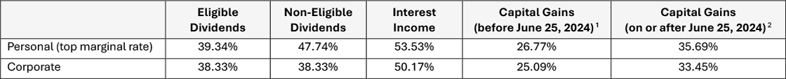 1 Effective June 25, 2024, the capital gains inclusion rate increased from 50% to 66.67% for corporations and trusts. For individuals, the increased inclusion rate applies to capital gains in excess of $250,000 per calendar year.